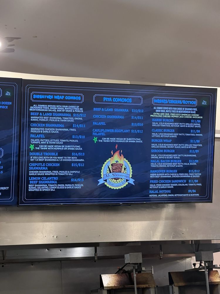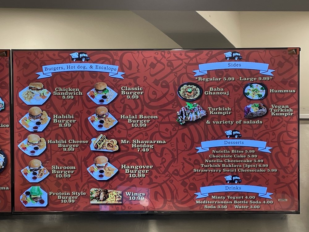 100% Halal marinated beef, onion, sumac, parsley, tomatoes, Pickles and tahini sauce.